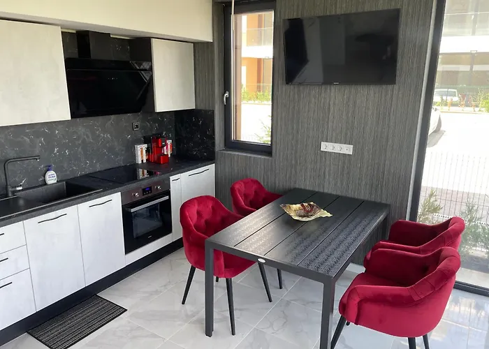 Apart Luks Garden Perva Linia Lägenhet lägenhet ligger cirka 4 km från Sunset Waterpark, och ståtar med utsikt över trädgården. Stället har 1 sovrum, 1 badrum och en terrass.